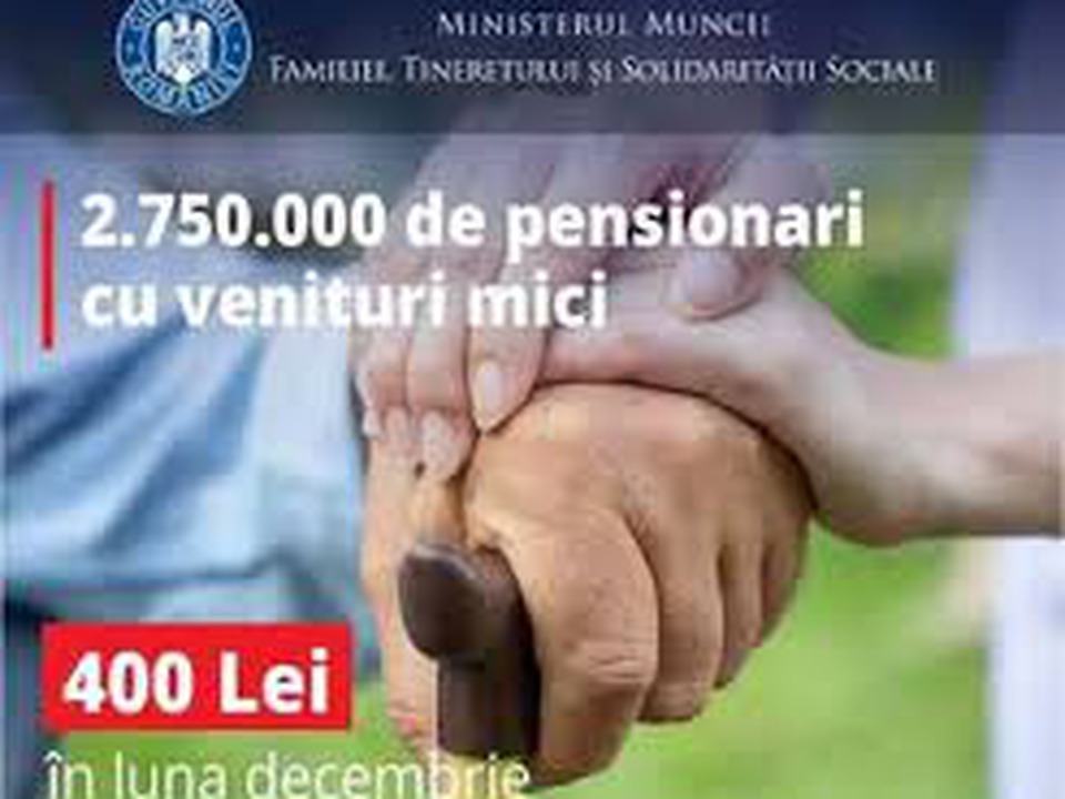Rentner mit einem Einkommen von weniger als oder gleich 2.574 Lei erhalten im Dezember eine finanzielle Unterstützung in Höhe von 400 Lei. Das gab Arbeitsminister Florin Manole bekannt.