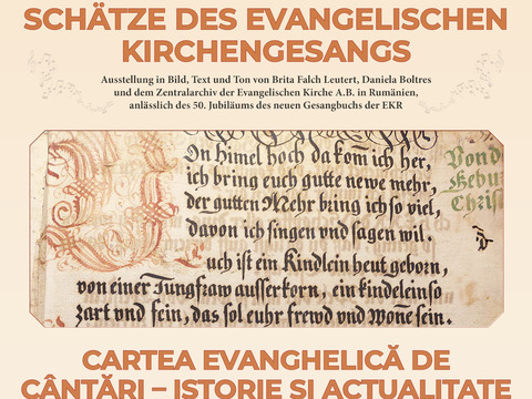 Schätze des evangelischen Kirchengesangsveröffentlicht: Donnerstag, 27 November 2025Die Ausstellung in Bild, Text und Ton, "Schätze des evangelischen Kirchengesangs", wird am Dienstag, dem 2. Dezember 2025, um 17 Uhr im Terrassensaal des Teutsch-Hauses in Hermannstadt eröffnet. Die Ausstellung wurde von Brita Falch Leutert und Daniela Boltres anlässlich des 50. Jubiläums des neuen Gesangbuchs der Evangelischen Kirche A.B. in Rumänien (EKR) erarbeitet und mit Exponaten aus dem landeskirchlichen Zentralarchiv und der Redaktion der Hermannstädter Zeitung ergänzt. Zur Ausstellungseröffnung werden alte und neue Gesangbuchlieder unter Leitung von Landeskirchenmusikwart Jürg Leutert erklingen. Die Ausstellung kann bis zum 27. Februar 2026 von Montag bis Freitag zwischen 10-17 Uhr (geschlossen über Weihnachten und Neujahr) gesehen werden. |