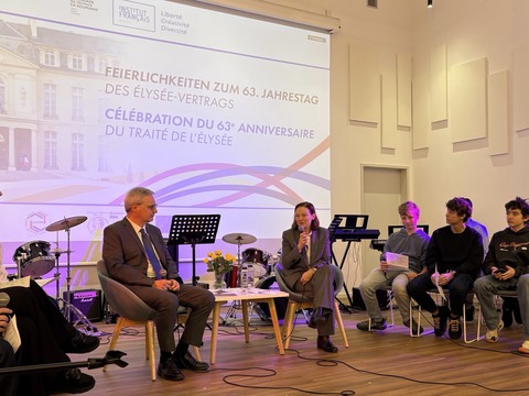Die Botschafterin Deutschlands und der Botschafter Frankreichs feierten gemeinsam den Deutsch-Französischen Tag in Bukarestveröffentlicht: Donnerstag, 22 Januar 2026Die Botschafterin Deutschlands und der Botschafter Frankreichs in Rumänien, Angela Ganninger und Nicolas Warnery, feierten gemeinsam den Deutsch-Französischen Tag in Bukarest und bekräftigten die starke Freundschaft zwischen den beiden Ländern und deren zentrale Rolle in Europa und Rumänien. Zu diesem Anlass sprachen die beiden mit Schülerinnen und Schülern der deutschen und französischen Schulen in Rumänien -Internationalen Deutsche Schule Bukarest (IDSBU), Goethe-Kolleg, Internationale Deutsche Schule Hermann Oberth und das Französische Lyzeum Anna de Noailles.
