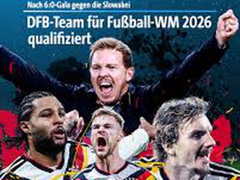 Sport: Deutsche Nationalmannschaft qualifiziert sich für die WMveröffentlicht: Dienstag, 18 November 2025In Leipzig gelang im Spiel gegen die Slowakei ein 6:0-Sieg. 2 erfolgreiche Torschüsse erzielte Sané, die weiteren Treffer gelangen Gnabry, Woltemade, Baku und Ouedraogo. |